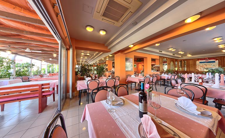 Prostrana klimatizirana hala za osamdeset ljudi pogodna je za bankete, poslovne ručkove i večere. Meni za ove prigode dogovara se po željama gosta. Većinu godine obroci su posluživani i na prostranoj terasi sa šezdeset mjesta.