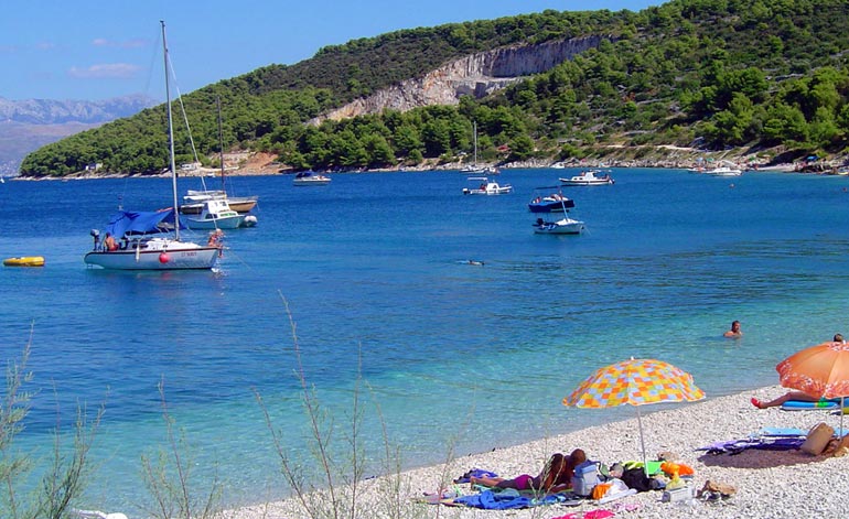 Prekrasna plaža smještena 1,5 km od centra Trogira, na ušću rijeke Pantan. To je 500 m duga šljunkovita i pješčana plaža sa borovom šumom na istočnoj strani koja čini dobar hlad. Da bi stigli do ove plaže, sjedite na autobus br. 37 iz Trogirske autobusne stanice za Split i izadite na drugoj autobusnoj stanici, hodajte oko 200 m i skrenite desno gdje ćete vidjeti znak za plažu. Tu je popularni plažni bar «Mosquito» smješten direktno uz more sa hladnim pićima, sladoledom i laganom hranom. Cijelo područje je zaštićeno prirodno stanište sa prekrasnom mlinicom Pantan na sjevernoj strani plaže.